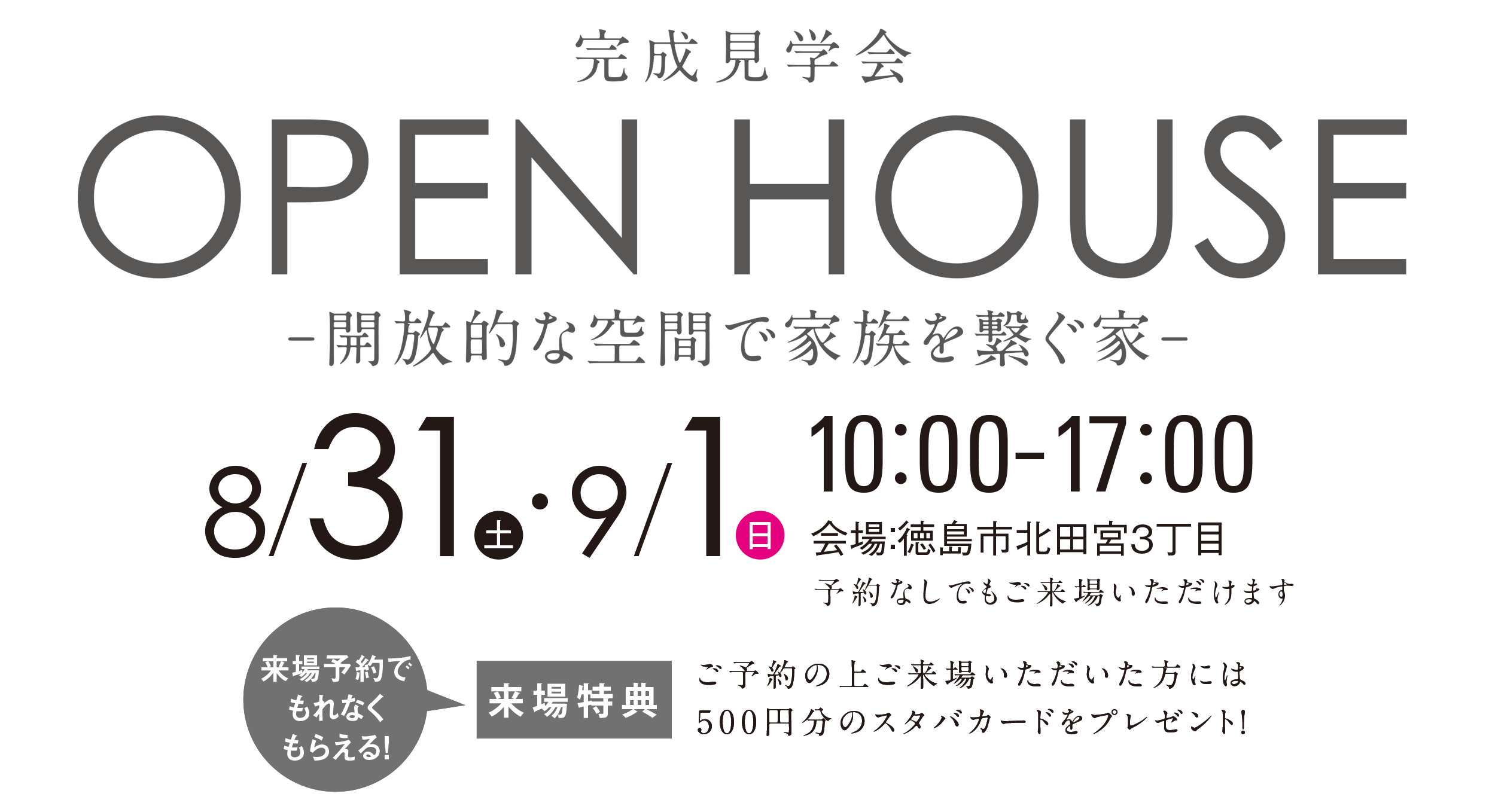8/31(土)9/1(日)の2日間、徳島市北田宮で新築住宅の完成見学会を開催します。